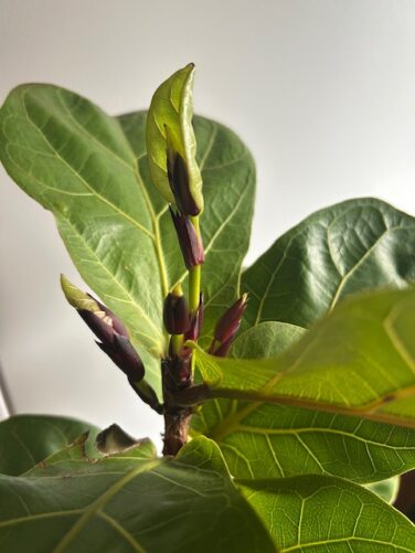 観葉植物 カシワバゴムノキ(フィカス・リラータ・バンビーノ)の脇芽が出てきました