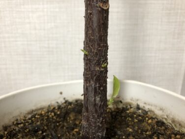 カシワバゴムノキ(バンビーノ)を切り戻し剪定して、剪定したところの近くから脇芽が出たのですが、その場所とは別の、木の根元に近い幹のところから新しい芽が出てきました。バンビーノを育てていて、剪定したところ以外の幹から脇芽が出たのは今回が初めてです。カシワバゴムノキ(バンビーノ)の脇芽【2025年9月2...