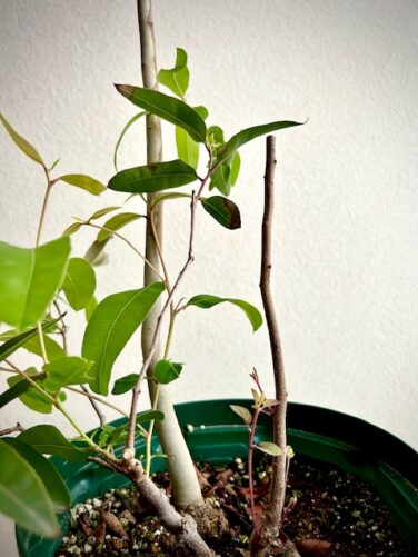 剪定したパキラの枝を、はじめは鹿沼土100%で育てて、その後観葉植物用の土に植え替えました。新しい葉が増え、順調に育っています。さし木をするのに、鹿沼土は良かったのですが、底に穴のないガラス容器で育てていたら、鹿沼土の粒が砕けた砂が底の方に集まり、乾燥すると固まってきて空気を含まない状態になってきま...